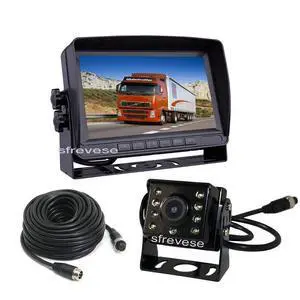 Vehicle Backup Rear View Car Camera and Monitor Kit,IP69 Waterproof Night Vision HD 1080P Rear Camera + 7" IPS SD DVR Recording 2CH Split Monitor with 4 Pin 15m Cable for Bus Trailer RV Camper Truck