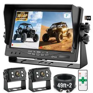 ZEROXCLUB 4 Wired Backup Camera System, 10" 1080P Monitor IP69K Waterproof Vibration-Proof 10G Rear Side View Camera, Quad Split Screen for Tractor, Truck, Trailer, Combine, Heavy Equipment, BH104