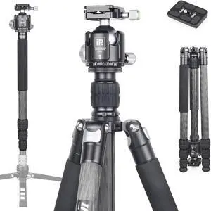Carbon Fiber Tripod-INNOREL RT75C Super Professional Tripod Monopod Heavy Duty Stand Support Low Gravity Center 360Panoramic ballhead for Digital DSLR Camera Black
