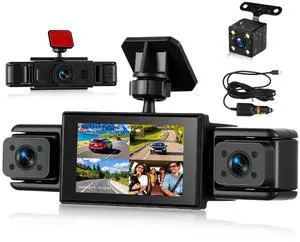 Mirror Dash Cam 4 Channels Dashcam 1080P Dash Cam Front, Left, Right and Rear with GPS, 360Rotation, 3" Loop Recording, Motion Detection
