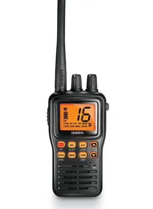 Uniden MHS75 Waterproof Handheld 2-Way VHF Marine radio, Submersible, Selectable 1/2.5/5 Watt Transmit Power. All USA/International and Canadian Marine Channels - Color Black