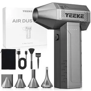 Yeeke Compressed Air Duster, 300000 RPM & 400 G Wind Pressure, 10000 mAh Battery with Fast Charging, 4-Gear Electric Air Duster Rechargeable, Electric Duster Mini Blower with LED for Office Cleaning