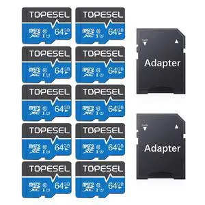 TOPESEL 10-Pack 64GB Micro SD Card Class 10 Micro-SDXC Memory Card UHS-I, High Speed Flash TF Card for Security Camera/Smartphone/Drone/Dash Cam/Tablet/PC, C10, U1, 64GB 10Pack