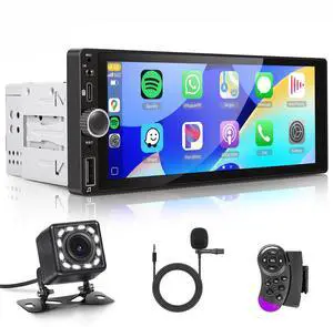 Hodozzy Single Din Car Stereo with Carplay Android Auto, 6.86 Inch HD Touch Screen Radio with Bluetooth, Car Radio 1 Din Mirrror Link,Voice Control,FM/DSP/SWC AUX/TF-Card/USB +Backup Camera