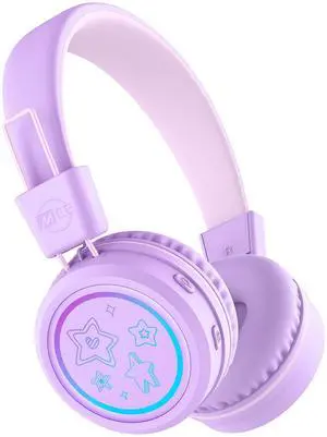 MEE Audio KidJamz KJ55BT Bluetooth Wireless Safe Listening Headphones for Children w/LED Lights, 85dB Volume Limiter, Microphone, & 40h Battery; Kids Headset for School/iPhone/iPad/Tablet (Lavender)