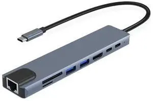 12 in 1 Type C Laptop Docking Station, with 2 USB3.0, 1 USB2.0, 2, 1 VGA, 1 PD, 1 3.5MM, 1 Small Memory Card, 1 Memory Card, 1 RJ45, 1 Type C Interface