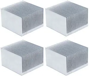 Aluminum Heat Sink, 4 Pcs 60x60x39mm Aluminum Chipset Heatsink Radiator Heat Sink Cooling Fin Silver for CPU LED Power Active Component (with Adhesive Backing)