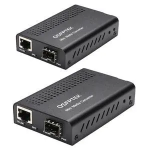 Gigabit Fiber to Ethernet Media Converter Kit, LC Single Mode, Up to 20km Fiber Opitc Network, Point-to-Point, Plug & Play, Complete Kit, Compact Converter, Industrial SFP Modules, US/EU Adapters