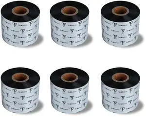 6 Rolls 2.36" x 1476' Premium Enhanced Wax Thermal Transfer Ribbon, 60mm x 450m Black Industrial Barcode Label Printer Ribbon - Compatible with Zebra, TSC, GoDex, Citizen, 1" Core