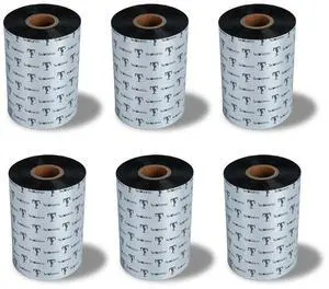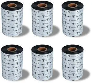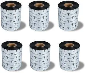 6 Rolls 4.17" x 1476' Premium Enhanced Wax Thermal Transfer Ribbon, 106mm x 450m Black Industrial Barcode Label Printer Ribbon - Compatible with Zebra, TSC, GoDex, Citizen, 1" Core