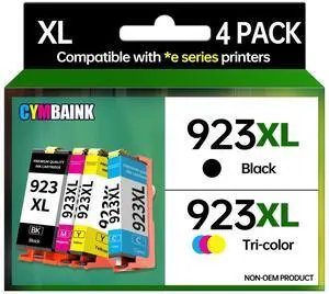 CYMBAINK 4Pack 923XL Ink Cartridge Combo Pac High-Yield - 1000 Black/800 Color Pages ^^ with Chip ^^ Compatible with Home, Office, School Printers ^^ Replacement for OfficeJet 9110 9110b (923XL-4PACK)