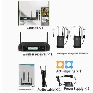 GLXD4 two-in-one wireless microphone for home karaoke and professional KTV, UHF adjustable frequency microphone, section U Head-mounted American plug