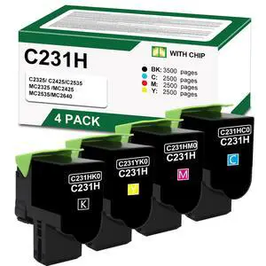 T2TONER C231HK0 C231HC0 C231HM0 C231HY0 High Yield Toner Cartridge Replacement for LMK C2325 C2425 C2535 MC2325 MC2425 MC2535 MC2640 Printer (Black 3500 Pages,Colour 2500 Pages)