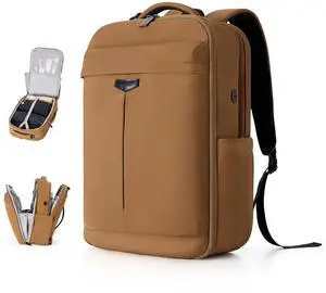 Timeet 32L Travel Backpack For Men Women, 4 In 1 TSA Friendly Flight Approved Carry on Backpack Fits 17 Inch Laptop, Water-resistant Personal Item Travel Bag for Work School Gym Camping, Warm Brown
