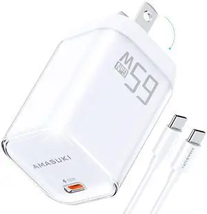SparkleNano 65W USB C Charger,One-Port GaN PPS Fast Charging Block,Travel Essentials Foldable Plug,for MacBook Pro/Air,Pixelbook,iPad Pro,iPhone 17/16/Pro,Galaxy S23,Pixel (USB C Cable Included)