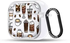 MOSNOVO Case for Airpods 4, Protective Clear Case with Shockproof Dual Layer Hard Luxe Metal Ring Designed for Airpods 4 Generation - Coffee