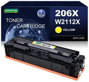 PRINPUSE 206X 206A Yellow Toner Cartridge High Yiled, W2112X W2112A Compatible for HP 206A 206X, for HP Color LaserJet Pro M255dw MFP M282nw M283cdw M283fdw