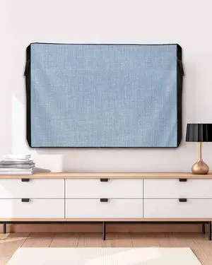 Outdoor TV Cover 40 to 43 Inch Sky Blue Solid Color Weatherproof Waterproof TV Screen Protector with Zipper&Pocket Retro Linen Minimalist Style Outside Flat TVs Enclosure