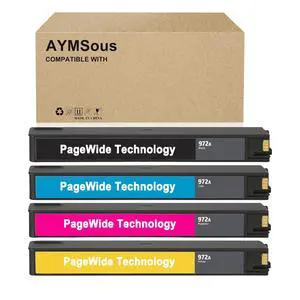 AYMSous 972A Ink Cartridge Replacement for HP 972A for HP 972 for HP PageWide Pro 477dw 577dw 452dw 352dw 377dw 452dn 477dn 577z 552dw P55250dw Printers (4-Pack B/C/M/Y)