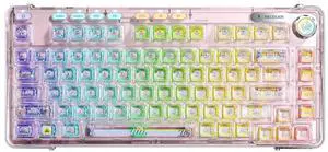 Odpaltoy F81 75% Transparent Mechanical Keyboard forBT5.0/2.4G/USB-C,Hot Swappable Mechanical Keyboard with Transparent Keycaps,RGB Gaming Keyboard for Win/Mac,Gasket, 4000mAh (Pink)