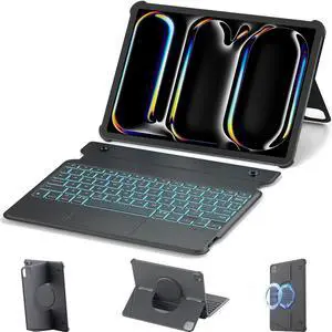 NOKBABO Trackpad Keyboard Case for iPad Pro 13 inch (M5/M4, 2025/2024), iPad Air 13" (M3/M2) & iPad Pro 12.9 6th/5th/4th/3rd, 360 Rotatable, Rainbow Backlit, Pencil Holder - Black