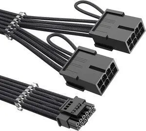 RTX 4070Ti PCIe 5.0 Power Cable Extender, 12VHPWR 16Pin(12+4) Male to 2x8Pin Female 16AWG Sleeved Extension Cord with Cable Combs Compatible GeForce RTX 4070Ti/4070/4060Ti/4060 (13.3in, Black)