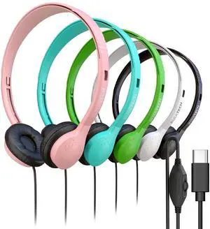WAHUWAY USB-C Headphones Bulk, 30-Pack Suitable for Classroom, School, Children, and Teenagers, USB Type-C Headphones Compatible with Pad and Smartphones (Multi Color)