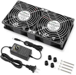 Wathai 120mm x 25mm Waterproof Small Box Fan IP67 12V Computer Fan with AC Plug Speed Controller 110v 120v 220v 240v for Biltong Box, Grow Tent, Terrarium, Aquarium, Greenhouse Cooling