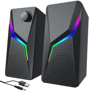 AYJBKL Computer Speakers, PC Speakers for Desktop with 6 Lighting Modes, PC Gaming Accessories, Stereo Sound Desktop Computer Speakers with 2 Bass-Boost Ports, USB Powered 3.5mm AUX Cable