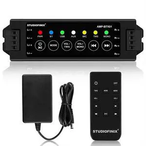 STUDIOFINIX 4-Channel Mini Amplifier with Wireless App & Infrared Remote Control, Bluetooth 5.0, USB/MIC/AUX/TWS Inputs and Power-Off Memory for Ceiling/Wall/Bookshelf/Garage