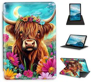 FXIANGWL for Samsung Galaxy Tab S9 Plus, 360 Degrees Rotating Smart Protective Tablet Case, Auto Wake/Sleep Feature, Adjustable Angle, Suitable for Tab S9 Plus, Highland Cow Flower Crown