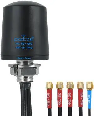 Proxicast 5-in-1 Combo Antenna 4x4 MIMO 5G + GPS - Vandal Resistant Low Profile Omnidirectional Hole Mount - 6 ft Coax - Black - Compatible with Cradlepoint, Digi, Peplink & Sierra (ANT-121-T44G-B-06)