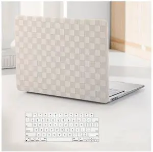 BYCeKe Compatible with MacBook Air 13.6 inch Case 2022-2026 M4 A3240 M3 A3113 M2 A2681,for Mac 13 M4 Checkered Textured Cream Plastic Hard Shell&Keyboard Cover for Mac Air 13.6 Laptop,Checkerd Neutral