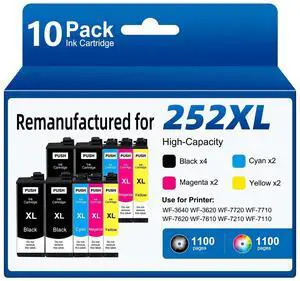 252XL Ink Cartridges Remanufactured Replacement for Epson 252XL T252XL Ink Cartridges Combo Pack (10 Pack) for Workforce WF-3640 WF-3620 WF-7720 WF-7710 (4 Large Black, 2 Cyan, 2 Magenta, 2 Yellow)