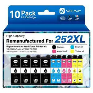 Weemay 252XL Ink Cartridges Combo Pack Remanufactured Replacement for Epson 252XL Ink Cartridges for Epson Printer Workforce WF-3640 WF-3620 WF-7720 WF-7710 WF-7620 WF-7610 WF-7210 WF-7110 (10-Pack)