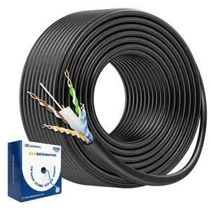 Vertical Cable CAT5E, Shielded Dual Jacket, Direct Burial, 1000ft, Black, Bulk Ethernet Cable