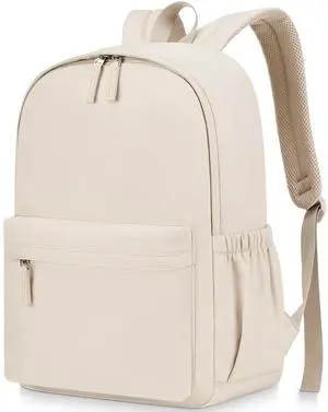 CLOKARS Backpack for Teen Girls Large Middle-School Primary Elementary Students Bookbag 18.5 inch Laptop Bag for Women Lightweight Casual Daypack (Beige)