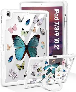 Uppuppy for iPad 9th/8th/7th Generation Case, for iPad Air 3/ Pro 10.5 2017 - Women Girls Cute with Pencil Holder&Stand Clear Cover Butterfly Girly for iPad 9/8/7 Gen, Air3, Pro 10.5 Inch Case