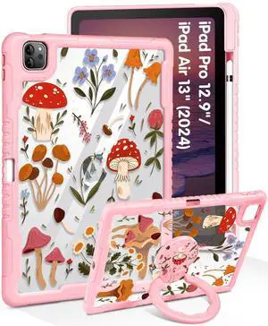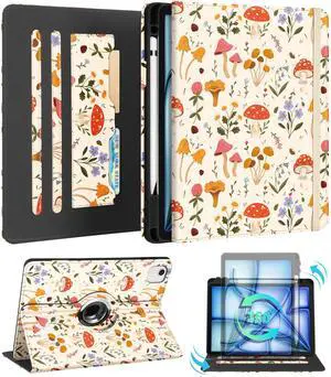 Kidcube for iPad Air 11 Inch Case M3/M2, Air 5th/4th Generation Cases 10.9'', Pro 11'' 2020 - Women Girl Aesthetic Cute Rotating Stand Folio Cover with Pencil Holder & Card Slot Mushroom Flowers