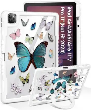 Uppuppy for iPad Air 11 Inch Case M3 2025 & M2 2024, Air 5th/4th Generation, Pro 11 Case - Women Girls Cute with Pencil Holder&Stand Clear Butterfly Girly for iPad Air 6/5/4 Gen, Pro 11 Cover