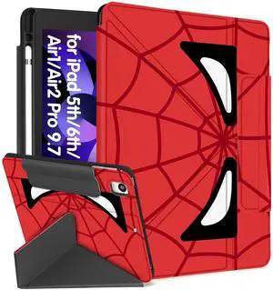 Miss Adola for iPad 6th/5th Generation 2018/2017 Case for iPad Air 2nd/1st Pro 9.7 Inch with Pencil Holder Cute Cool Cartoon Anime Kawaii Design Tablet Cover for Boys Girls Women, Red Eyes