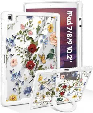 Uppuppy for iPad 9th/8th/7th Generation Case, for iPad Air 3/ Pro 10.5 2017 - Women Cute Girls with Pencil Holder&Stand Clear Cover Girly Flower Floral for iPad 9/8/7 Gen, Air3, Pro 10.5 Inch Case