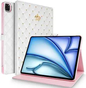 Topwin Cute Crown Case for iPad Air 11-inch M2 2024/5th/4th 10.9'',iPad Pro 11 Inch,Flip Bling Diamond PU Leather Smart Auto Sleep/Wake