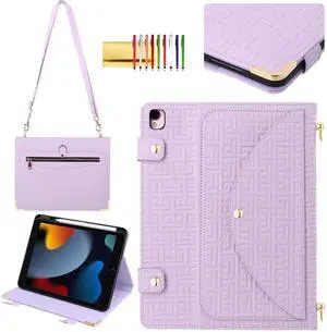 Handbag Case for iPad Air 3 2019/Pro 10.5", 10.2" iPad 9th/8th/7th Generation Cover with Pencil Holder, Techcircle Unique Pattern Folio Stand Functional Wallet Case with Shoulder Strap, Lavender