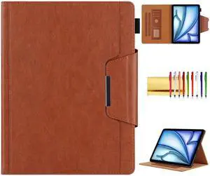 Folio Case for iPad Air 11" M3 M2, Air 10.9", iPad Pro 11 2018-2022 - Techcircle PU Leather Stand Soft TPU Back Magnetic Smart Cover with Pencil Holder + Card Slots + Front Pocket, Brown