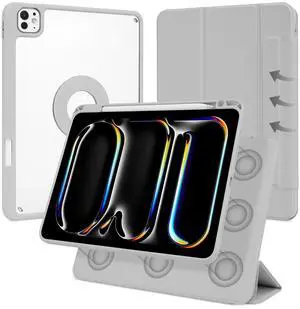 Dwopar Case for iPad Pro 11 inch M5/M4 (2025/2024, 6th/5th Generation), Removable and Detachable Magnetic Cover with Pencil Holder, Vertical Adjustable Stand, Tri-Fold Multi-Angle, Gray