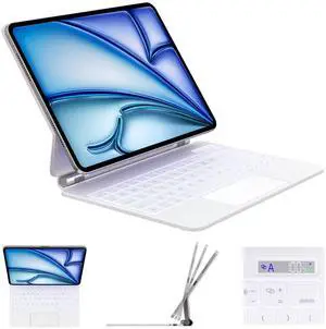 DVWDVW Keyboard Case for iPad Air 11 inch (M3 /M2 2025/2024) & iPad Pro 11 (4th/3rd/2nd/1st Gen), iPad Air 5th/4th Magic CaseMulti-Touch Trackpad,7 Colors Backlight White