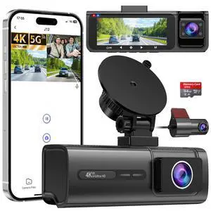 3 Channel 4K Dash Cam Front and Rear Inside, Wide-Angle 360 Camera for Car with 64GB Card Included, Durable Material Dash Camera with Loop Recording, Night Vision, G-Sensor, 5GHz WiFi, 24Hr Parking