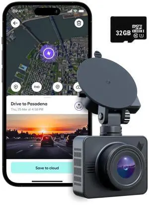 Nexar Beam GPS Dash Cam - Dash Camera for Cars with 32GB SD Card Included Unlimited Cloud Storage 24H Parking Mode Dash Cam for Cars. Wireless Car Camera with 1-Year Nexar Classic App Subscription