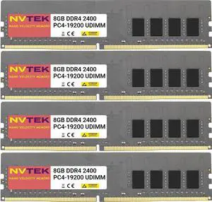NVTEK 32GB (4X8GB) DDR4 2400MHZ PC4-19200 UDIMM 1Rx8 1.2V CL17 288-PIN Non-ECC Unbuffered Desktop PC Computer Memory KIT